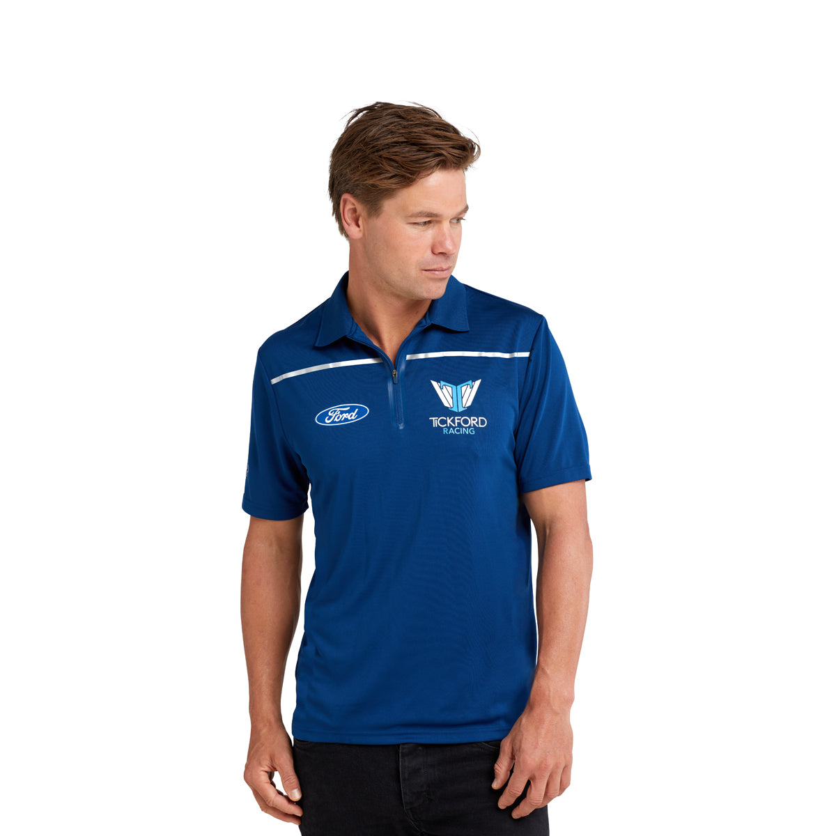 Created from a light and breathable polyester mesh, the Tickford Racing Men's Team Zip Polo offers a stylish approach to supportive wear at home or on the track. Offered in a full range of Men's sizing, you are sure to find the perfect fit. Featuring high-quality heat transfers for all logos and sponsors as well as a reflective stripe across the front. The Tickford Team Polo is your winning piece to support the Tickford Racing Team throughout 2023 and beyond.